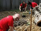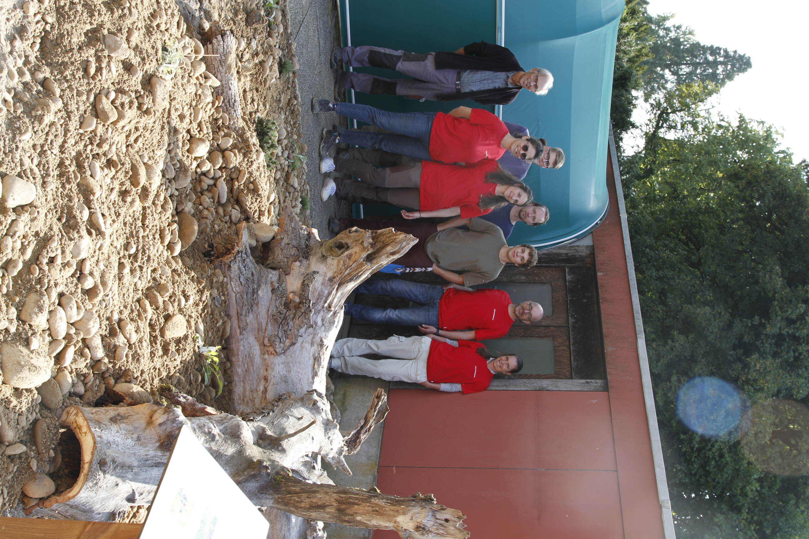 Viele Tonnen Wandkies waren bereits organisiert und so ging es am 2. Tag mit Yasemin, Patrizia, Fulya, Sarah und Rudi tatkräftig weiter. Neben der Verfüllung der Fläche – es mussten vorher etliche Schubkarren befüllt, gefahren und entladen werden – wurde die neue Fläche mit schönen Wurzeln und Steinen – sowie natürlich einigen ersten Pflänzchen gestaltet.