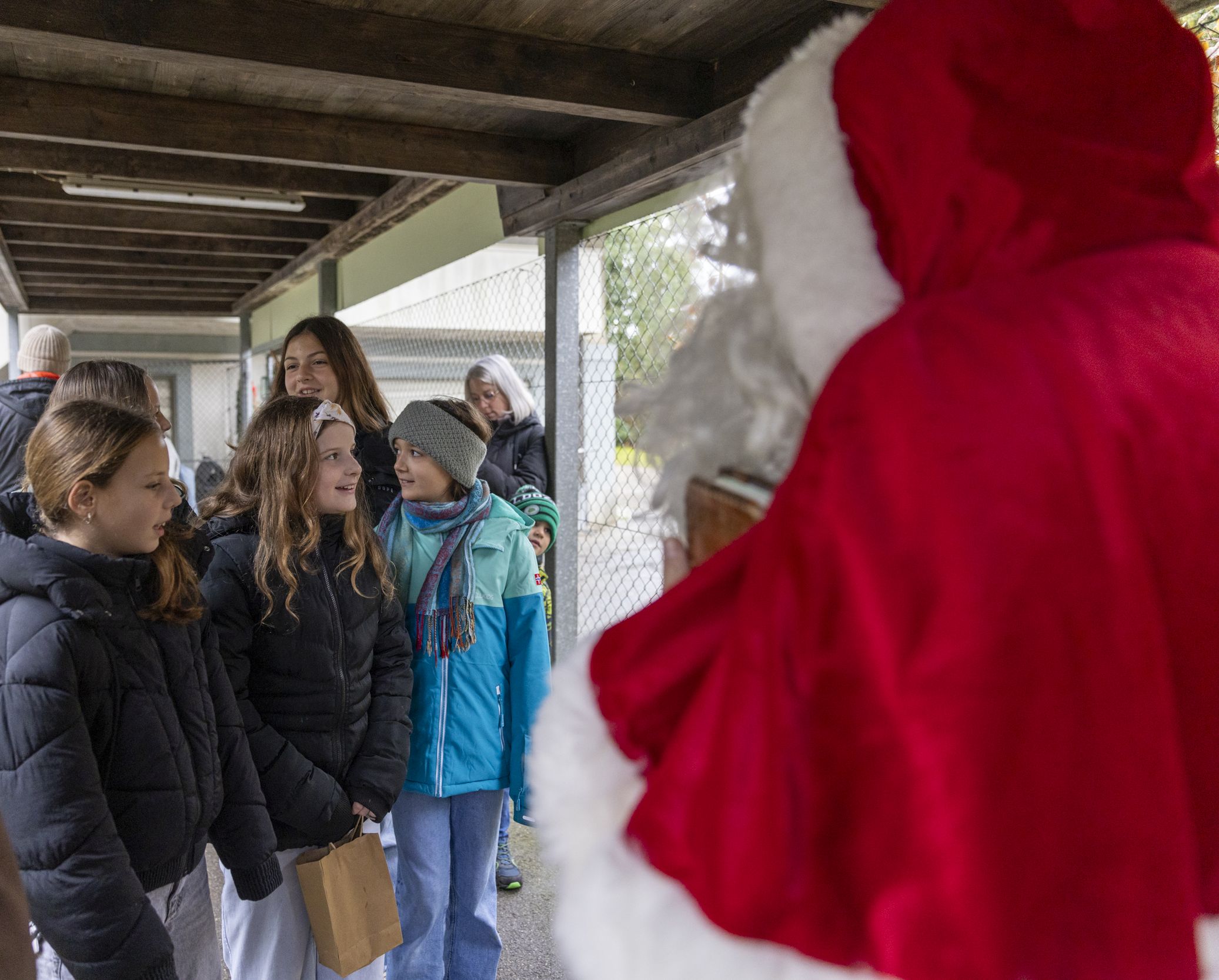 Fünf Schülerinnen haben an unserem Chlousefest Anfang Dezember 2025 den dort anwesenden Samiclous mit einer, sehr schön als Geschenk verpackten, Spende für die Wildstation überrascht. Vorgängig hatten sie eifrig gebacken und die Leckereien an zwei Märkten in Wiedlisbach verkauft. Die Einnahmen haben sie vollumfänglich der Wildstation gespendet. Als kleines Merci durften die Schülerinnen einen unserer Igelpfleglinge «kennenlernen».